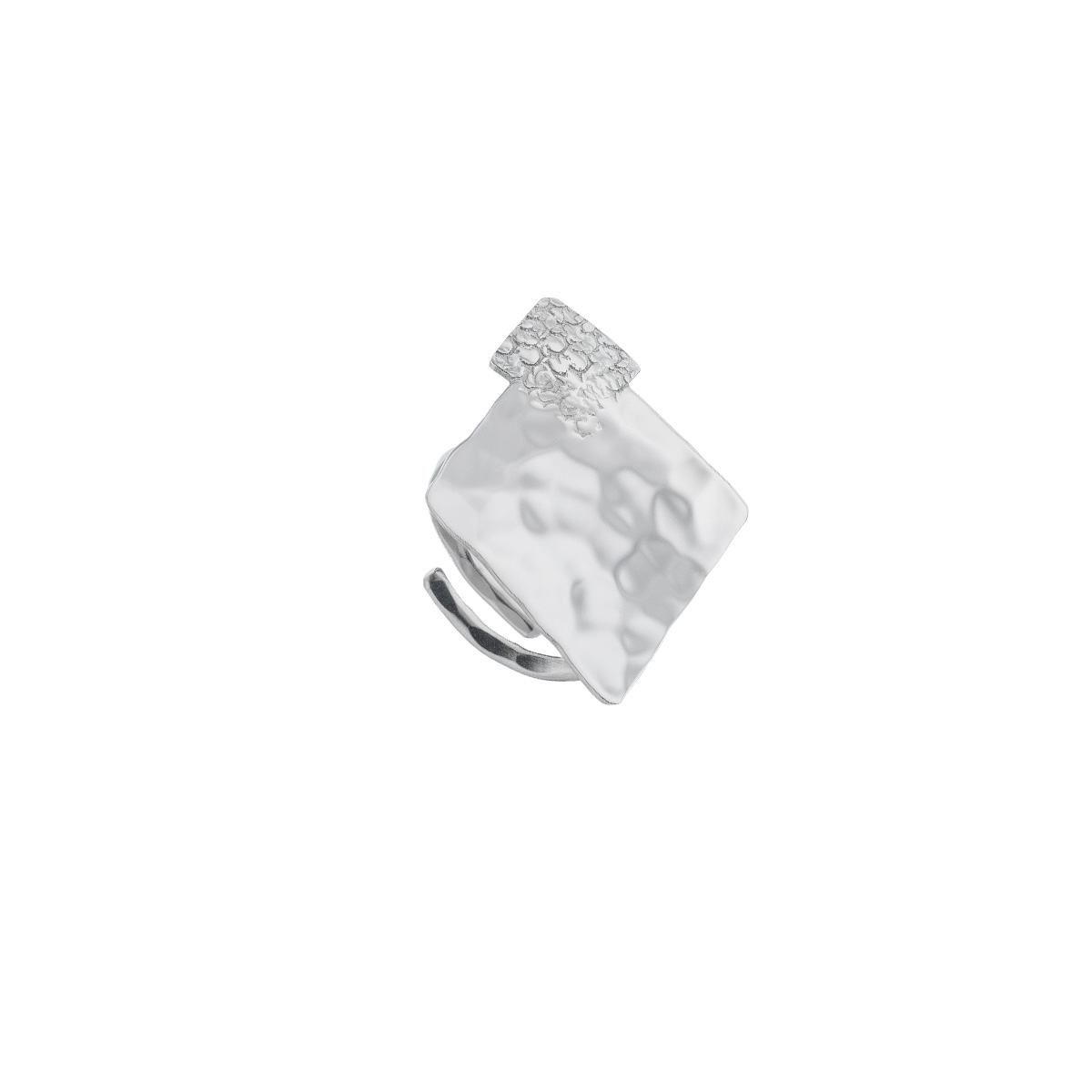 Anello doppio rombo regolabile in argento 925 rodiato, realizzato e martellato a mano