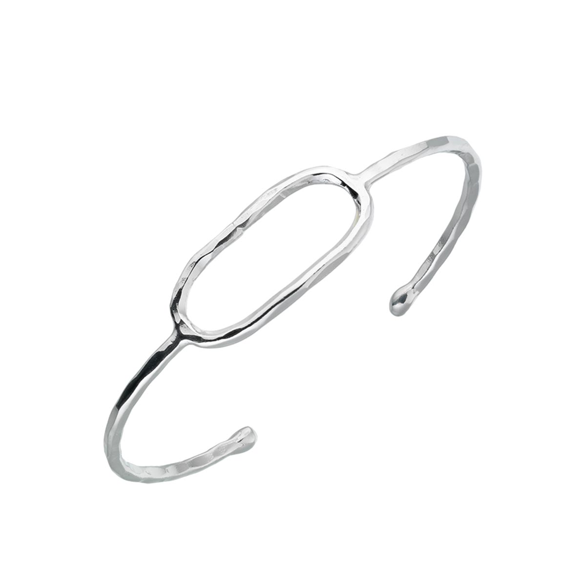 Bracciale ovale filo grosso in argento 925 rodiato, disponibile in 2 misure: cm. 15 e cm. 16,50, realizzato e martellato a mano, peso gr. 7,5
