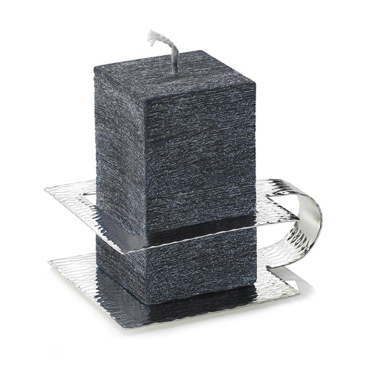 Candela artigianale cubo profumata h. cm. 10 con porta candela martellato a mano