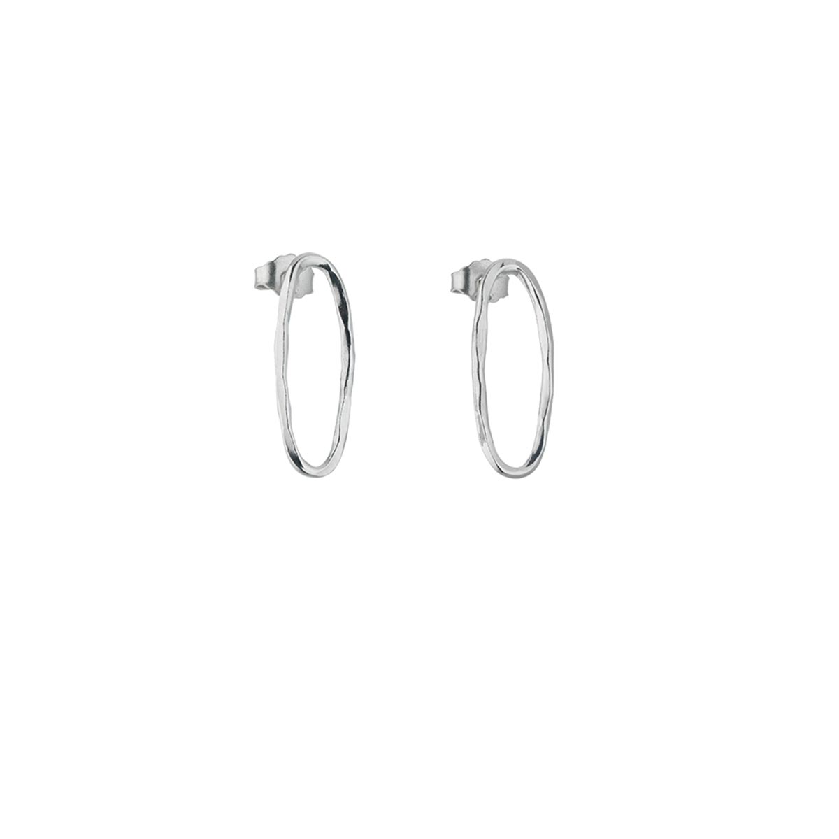Orecchini 2 ovali h. cm. 2,2 in argento 925 rodiato, realizzati e martellati a mano, peso gr. 2