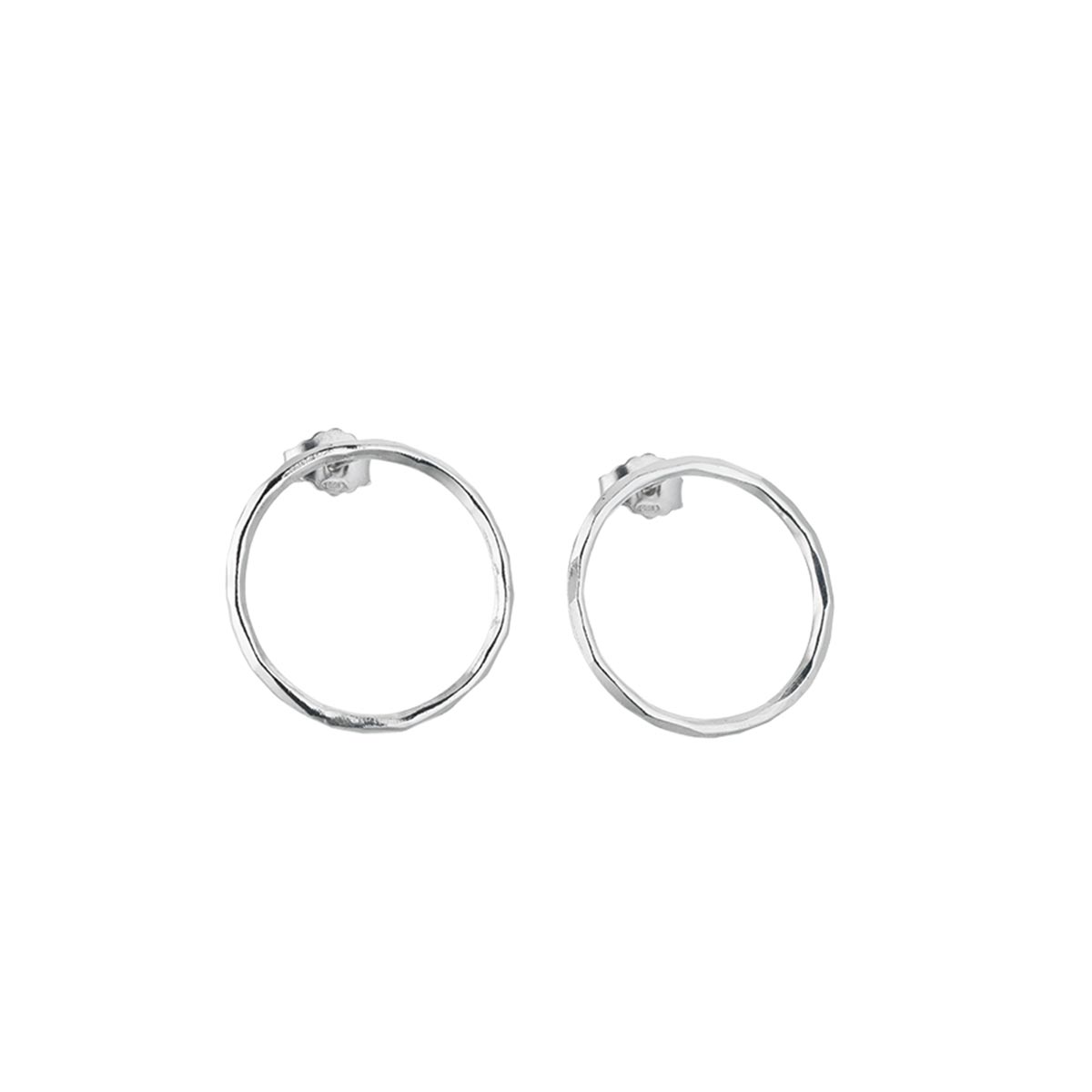 Orecchini cerchio 1 d. cm. 2 in argento 925 rodiato, realizzati e martellati a mano, peso gr. 2