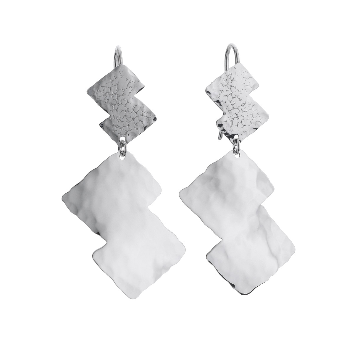 Orecchini doppio rettangolo pendenti in argento 925 rodiato, realizzati e martellati a mano