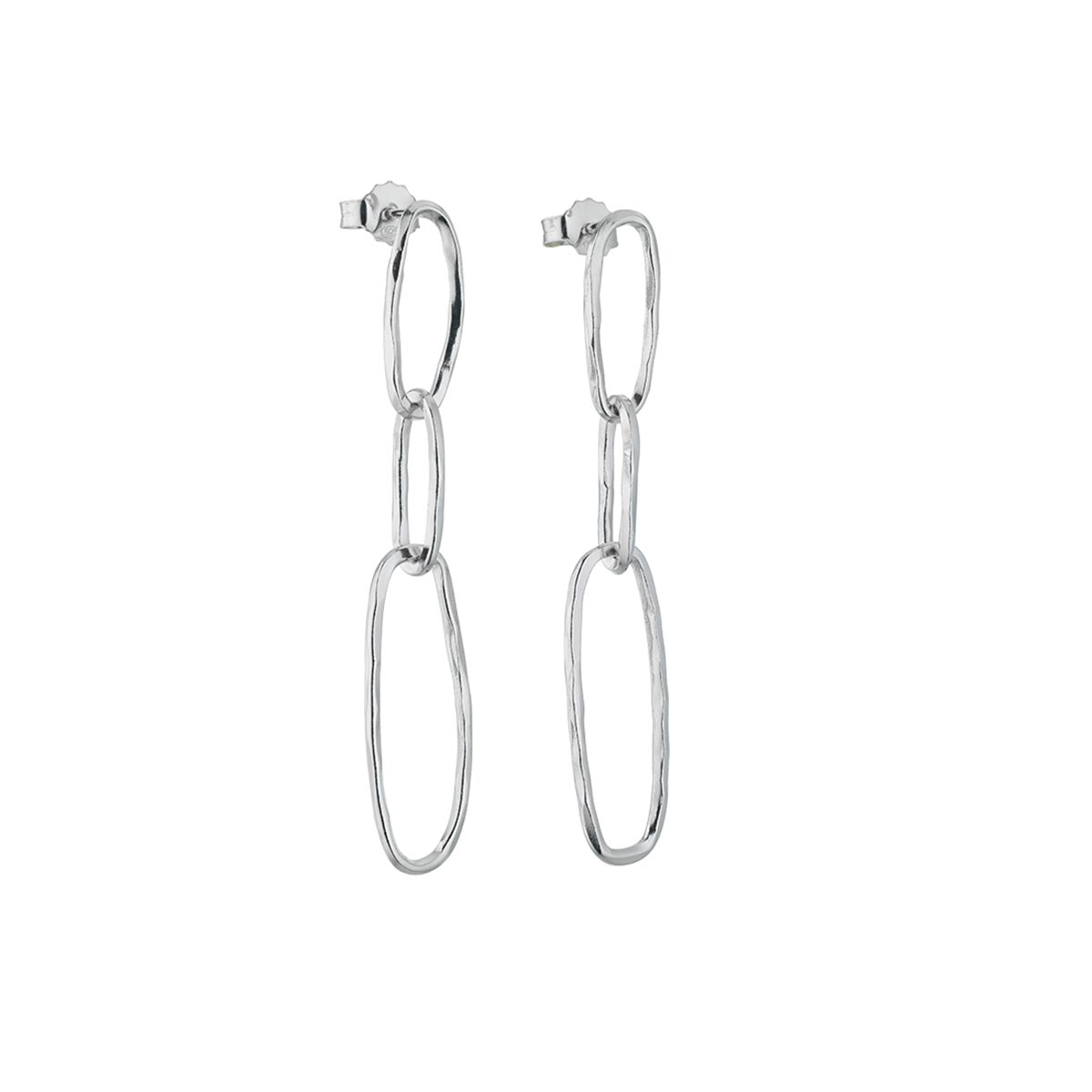 Orecchini ovali pendenti 1 h. cm. 5,5 in argento 925 rodiato, realizzati e martellati a mano, peso gr. 4,5