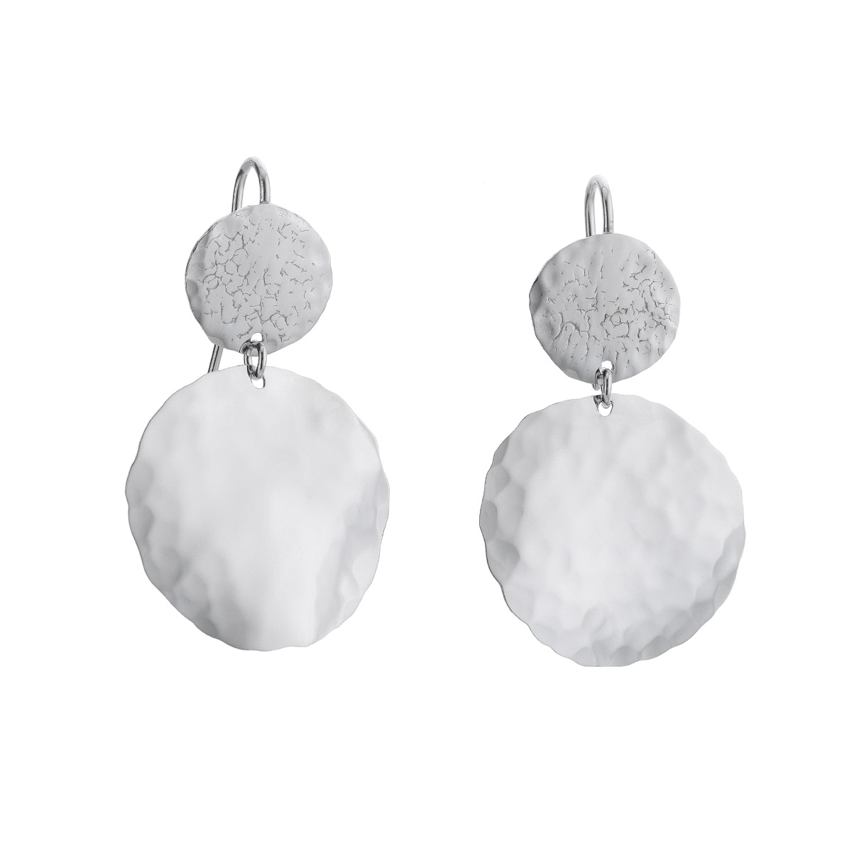 Orecchini tondi pendenti in argento 925 rodiato, realizzati e martellati a mano