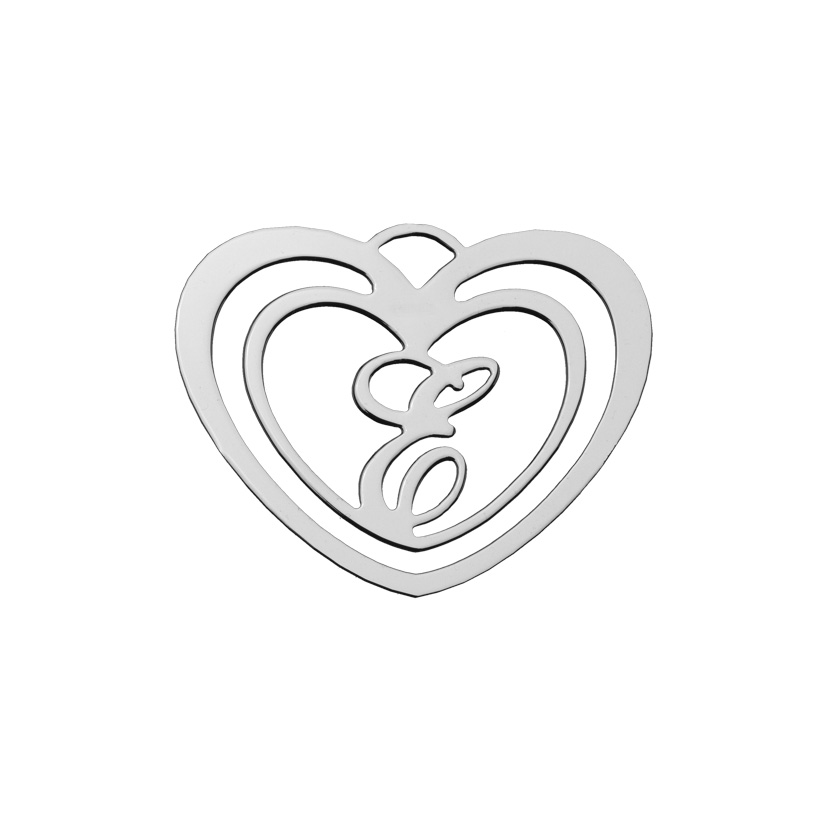 Segnalibro Botticelli cuore lettera E argento tit. 925 rodiato, h. cm. 3,40