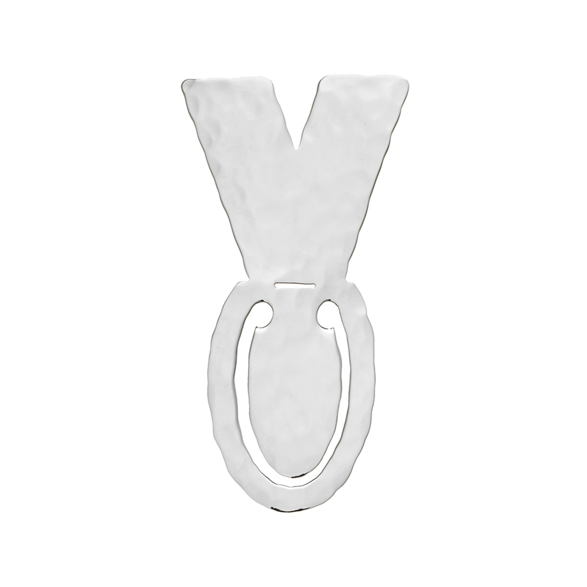 Segnalibro con iniziale V in argento 925 rodiato, realizzato e martellato a mano, h. c. 6,3
