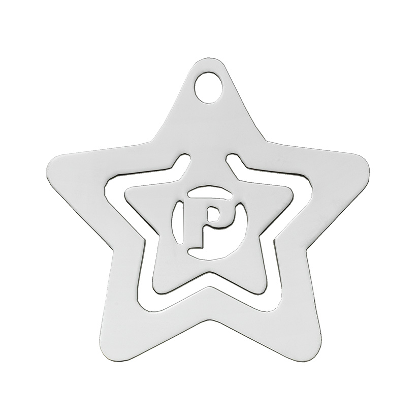Segnalibro Giotto stella lettera P argento tit. 925 rodiato, h. cm. 4,00